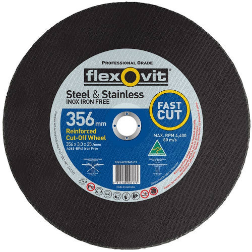 Flexovit A36S Metal Chop Saw Cut-Off Wheels 356x3.0x25.4