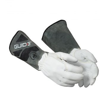 The GUIDE 1270 is a TIG welding glove made from durable and soft goat grain leather. The cuff is made from cow split leather with a comfortable cotton lining. All seams are made from heat-resistant Kevlar. The glove is moulded to the welder’s hand offering excellent dexterity and a perfect fit. Comfortable and offering excellent touch and feel, these welding gloves are designed for precision TIG welding.