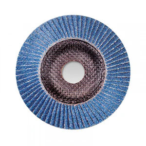 Premium closed coat blue zirconia flap discs with used backing made from non-flexible consumable fiberglass with a angle face, for ease of use. Used on angle grinders for stock removal, grinding and blending of welds, castings and other metal finishing.
